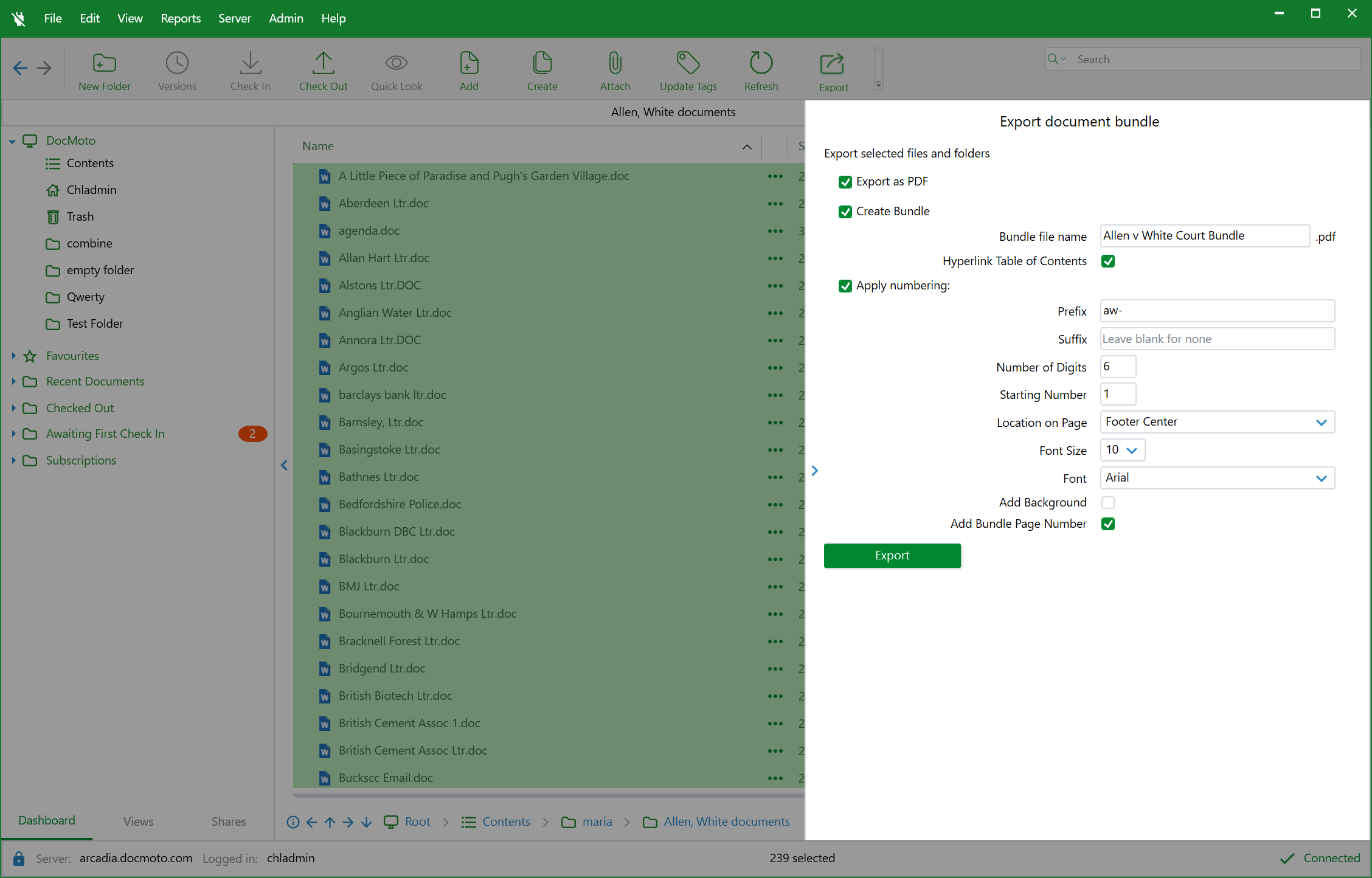 Every page of every document included in the bundle now has a unique bates number. Lawyers can now simply and uniquely identify content. All done with a single press of a button.